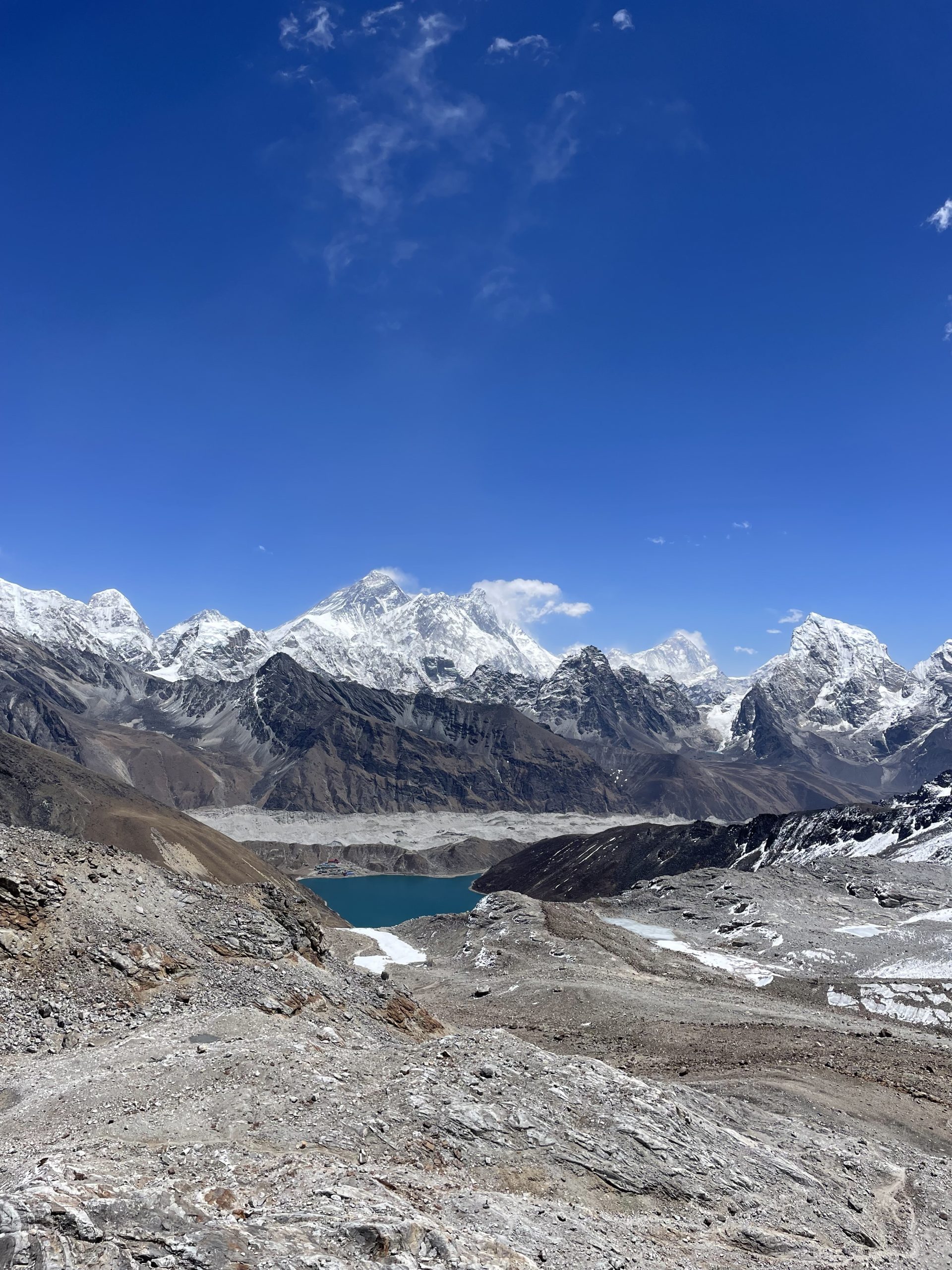One of the major highlights of the trek is the climb to Gokyo Ri (5,357 m), a world-renowned viewpoint offering one of the best panoramas in the Himalayas. From its summit, trekkers enjoy unobstructed views of Mount Everest, Lhotse, Makalu, and Cho Oyu four of the tallest mountains on Earth along with dramatic perspectives of the massive Ngozumpa Glacier, the longest glacier in Nepal. The sight of the emerald Gokyo Lakes framed by snow-draped peaks makes this viewpoint a once-in-a-lifetime experience for photographers and adventure lovers.